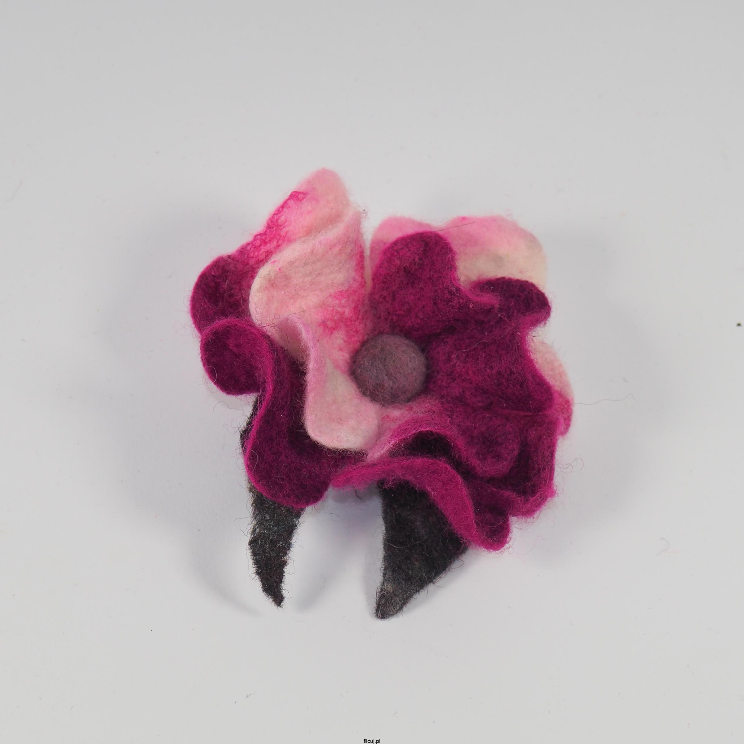 Broszka filcowa kwiat z wełny i jedwabiu