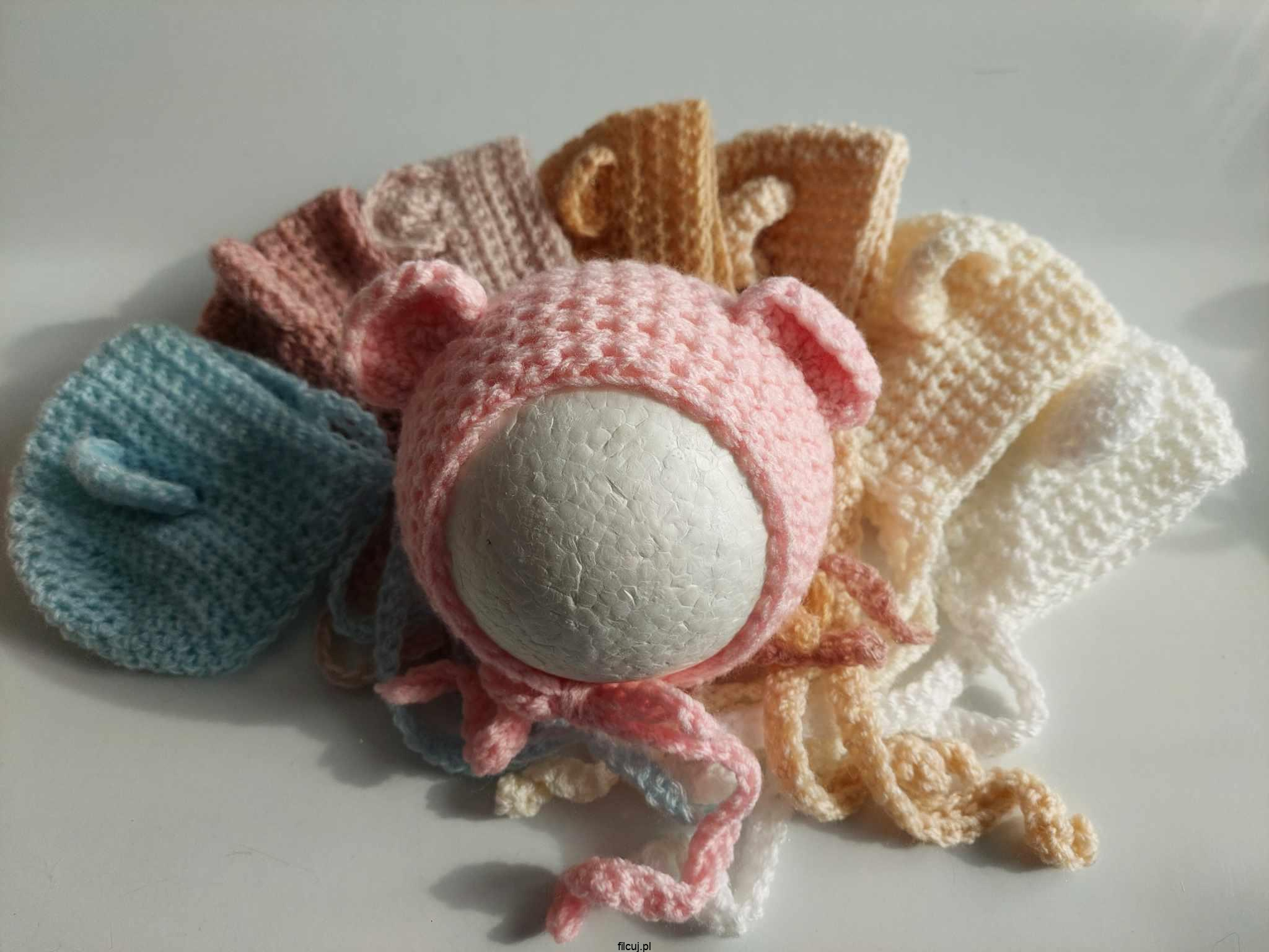 Ręcznie robiona Czapeczka Misia do sesji fotograficznej noworodkowa.