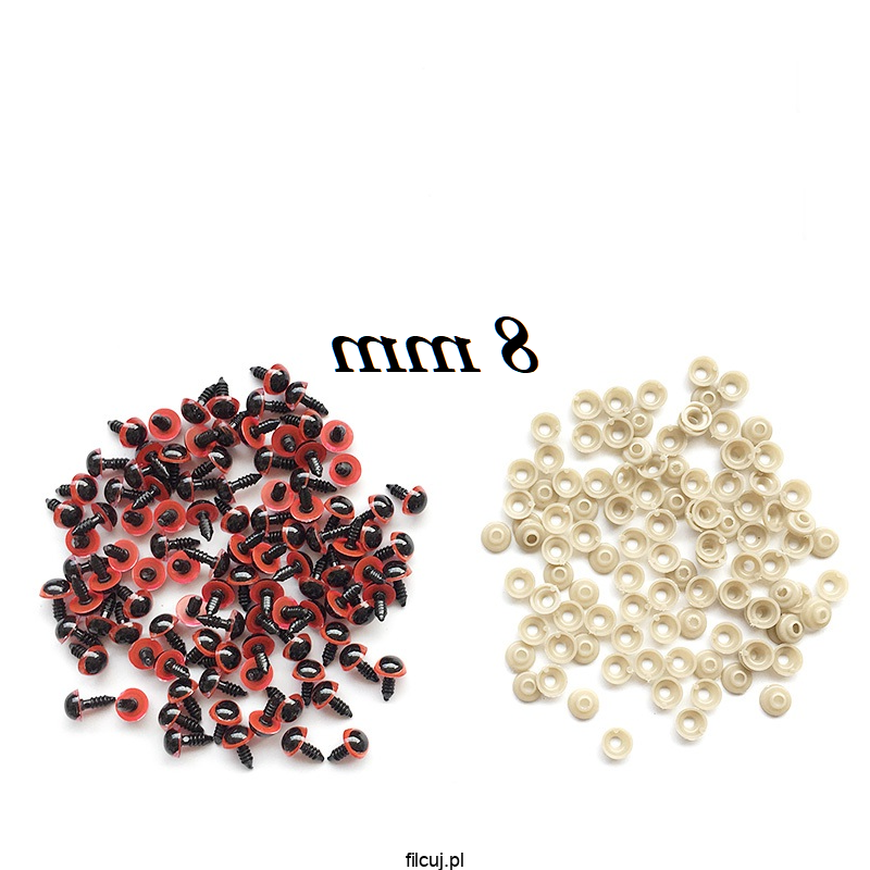 Zestaw bezpiecznych oczek plastykowych Czerwone (oczy) do filcowych maskotek, lalek, misiów i innych zwierzaków Amigurumi robione szydełkiem i drutami.