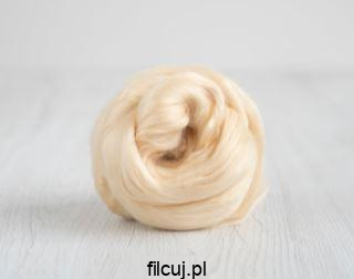 Lśniące włókno sojowe w kolorze miodowym, dostępne w formie czesanki (taśmy). Idealne jako dekoracyjny dodatek do wełny i innych włókien. Można go wfilcować na mokro, uzyskując interesującą, wypukłą fakturę, a także dodawać na sucho lub przy przędzeniu. Przypomina naturalny jedwab tussah i doskonale komponuje się z wełną oraz innymi materiałami.