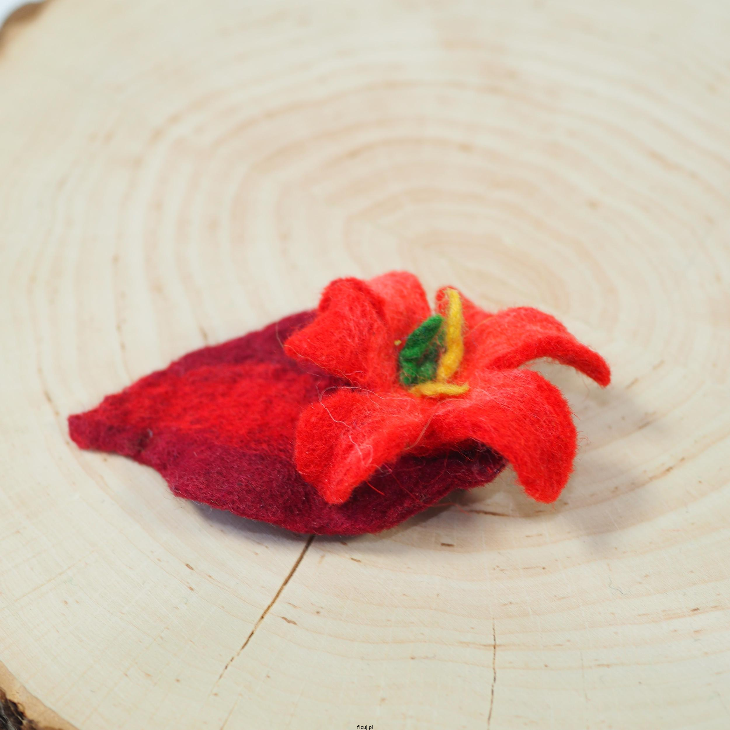 Przedmiotem sprzedaży jest piękna i oryginalna broszka z wełny merynosów wykonana metodą filcowania na mokro. 100% handmade. Broszka idealny dodatek do damskiej garderoby. Unikalna biżuteria może być wyjątkowym prezentem dla bliskiej osoby.