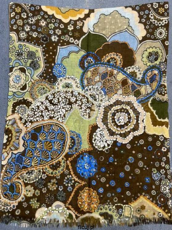 Damski szal kolorowy z wełny merino wyszywany w kwiaty