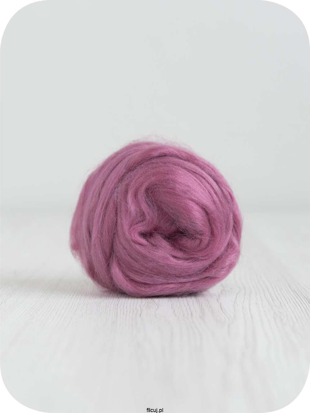 Jedwabna czesanka Mulberry Różowa Orchidea o bardzo delikatnych i błyszczących włóknach jest uzyskiwana z przędzy hodowlanych jedwabników. Jedwab Mulberry może być świetnym dodatkiem do filcowania na mokro, sucho i do ręcznego przędzenia. Rozłożona na wełnie w niedużych ilościach nadaje lekki połysk i ciekawą fakturę.