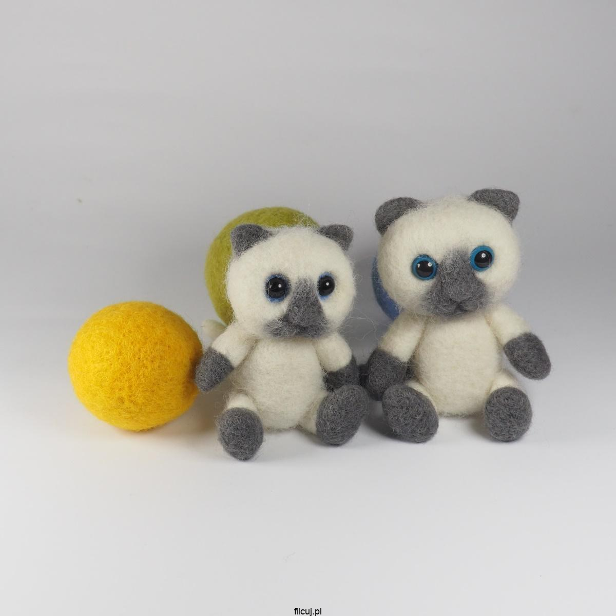Przepiękny biały kotek z ruchomymi łapkami został wykonany z wysokogatunkowej owczej wełny merynosów z Nowej Zelandii. Ręcznie robione techniką suchego filcowania za pomocą igły.