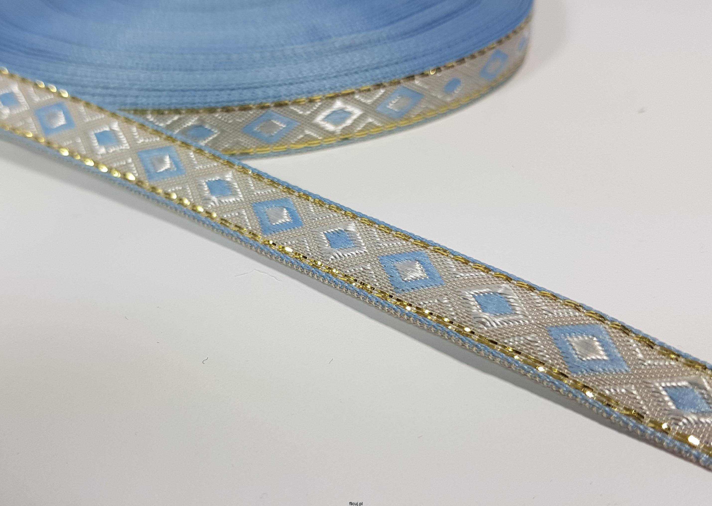 Tasiemka taśma żakardowa etno boho 10mm Błękitna