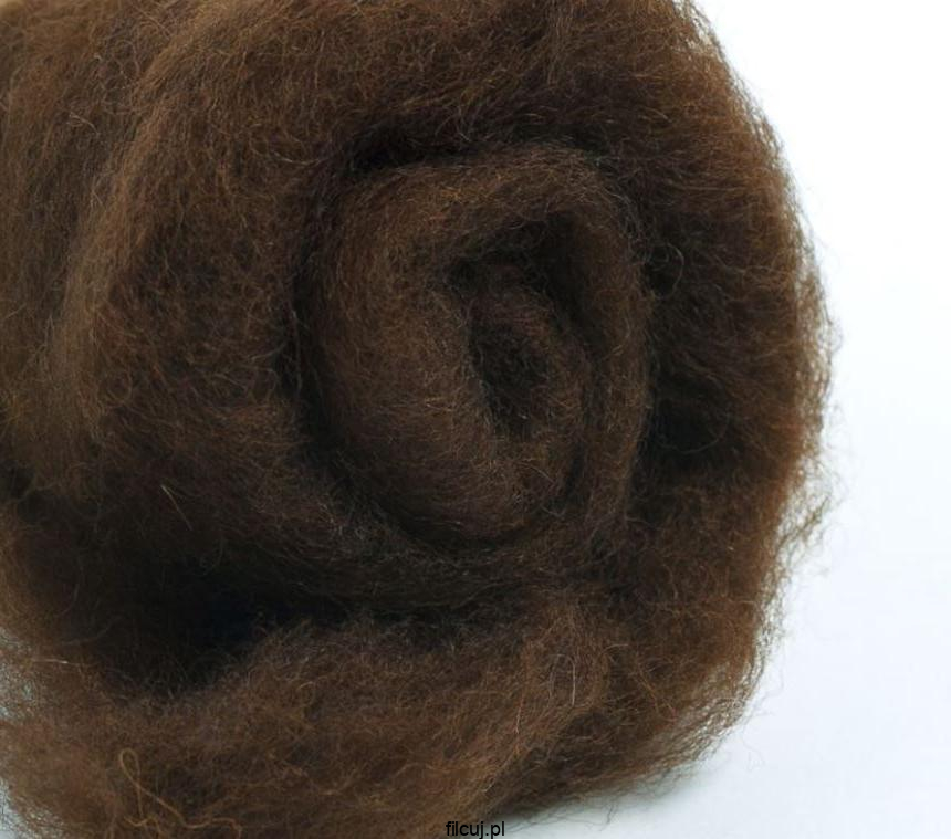 Zestaw Brązowy z wełny zgrzebnej w błamie z merynosów nowozelandzkich (Кардочес новозеландский) o grubości włókna ok. 27 μ.