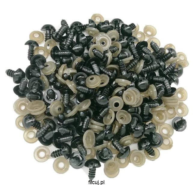 Bezpieczne czarne oczka (oczy) plastykowe do filcowych maskotek, lalek, misiów i innych zwierzaków Amigurumi robione drutami lub szydełkiem.