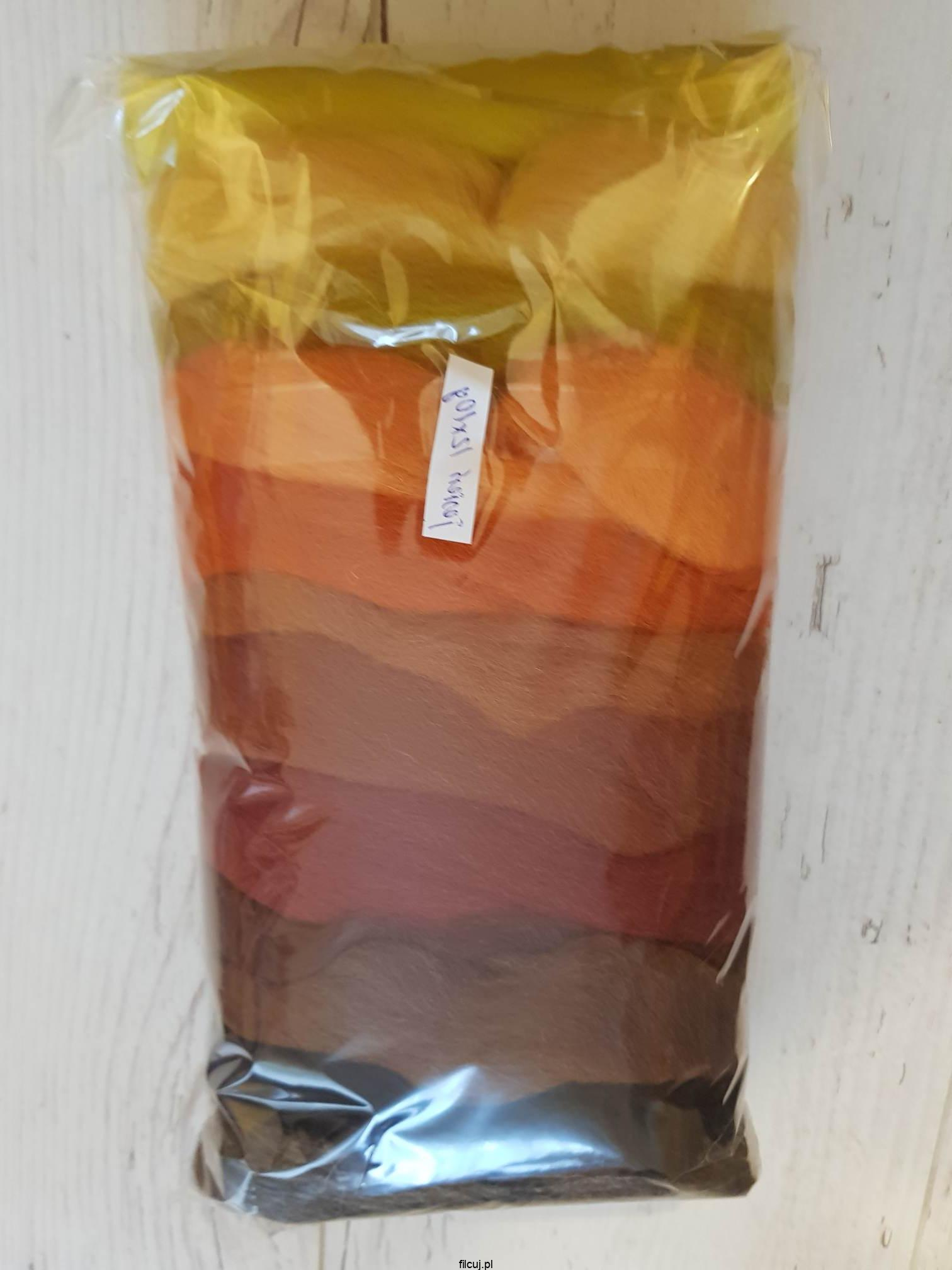 Zestaw Morski 100% z polskiej wełny owczej merynos składa się z 12 pięknych Odcieniach Brązu. Miękka, miła w dotyku, lekko połyskująca, czesana gręplowana w jednym kierunku o szerokości ok. 5cm. Polska wełna czesankowa standardowa o grubości włókien 25-28mic. Czesanka spełnia wszelkie wymagane standardy jakości i posiada odpowiednie certyfikaty.